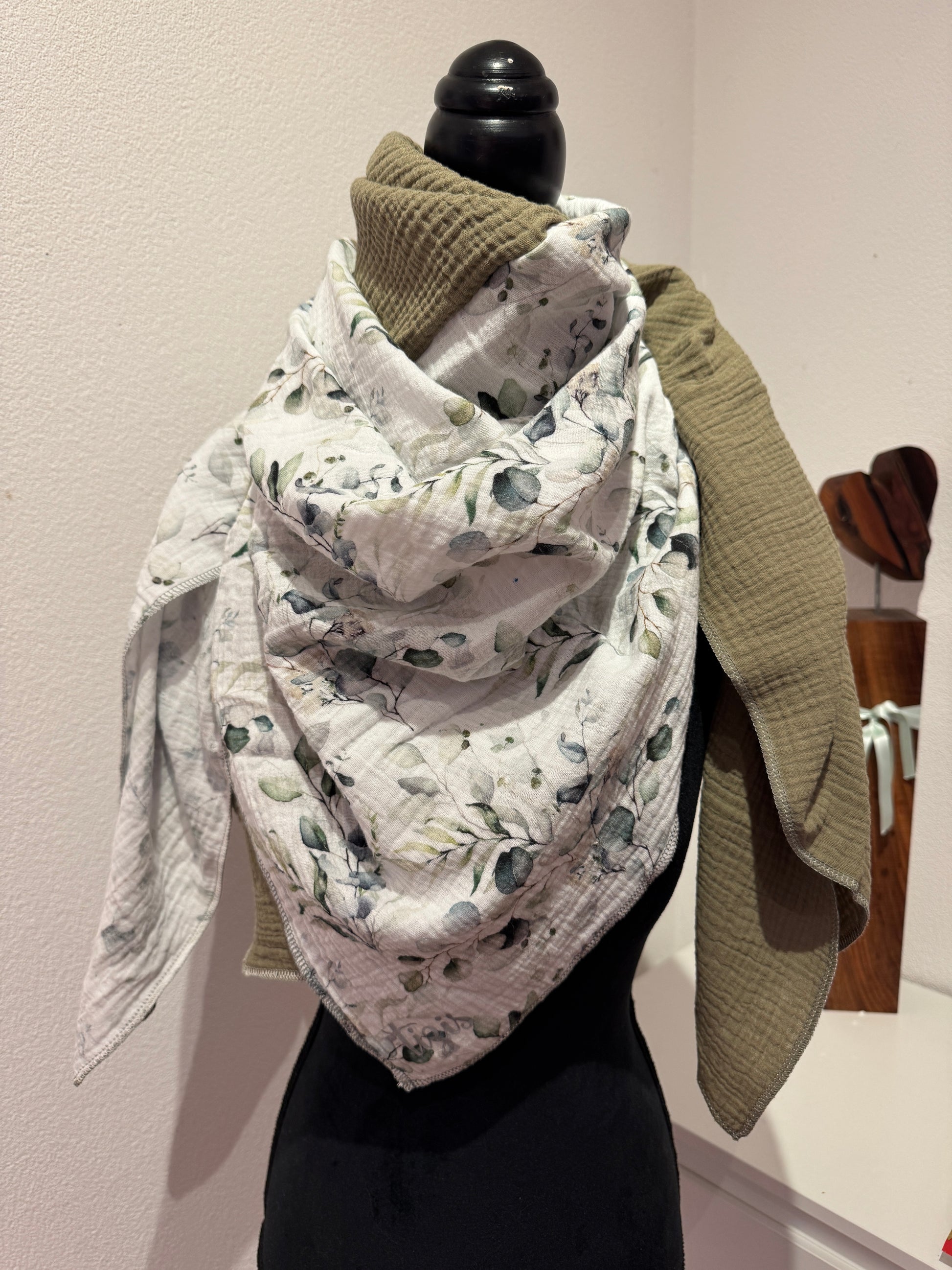 Musselin Halstuch - Eukalyptus Zweige/grüän
